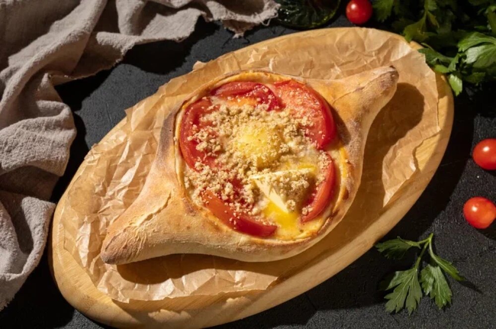 Вариант грузинского блюда, представляющего собой лепёшку в форме лодочки, залитую начинкой из сыра и помидоров