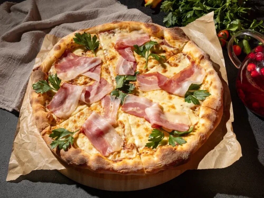 Особенность блюда - начинка из бекона и белого соуса, напоминающего тот, который входит в состав одноимённой пасты